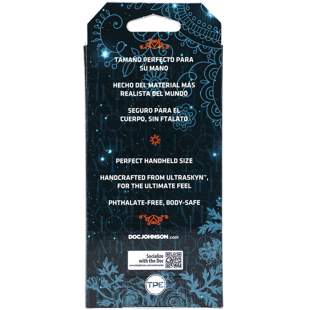 We presenteren je deze prachtige karamelkleurige pocket pussy. Dit item is discreet en gemakkelijk te gebruiken dankzij het heerlijk compacte ontwerp. Mannen zullen genieten van het realistische gevoel, want deze lijn is gemaakt van latexvrij ULTRASKYNâ„¢, het meest vlezige, authentieke materiaal op de markt. Ze warmen zelfs op door aan te raken voor een sensationele ervaring. Alle verpakkingen van onze Noches Latinas lijn zijn overwegend in het Spaans en gericht op Spaanstalige speelgoedgebruikers. De Noches Latinas Amiga Para La Palma lijn bestaat uit een vagina, een kont en een mond.